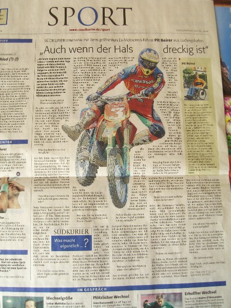 Die Hoffnung stirbt zuletzt! Mit der Stiftung Wings for life' machen wir - allen voran Heinz Kinigadner (Beirers Freund und KTM-Sportmanager, Anm. der. Red.) - ganz schön Wirbel in der Szene. Fachleute in der