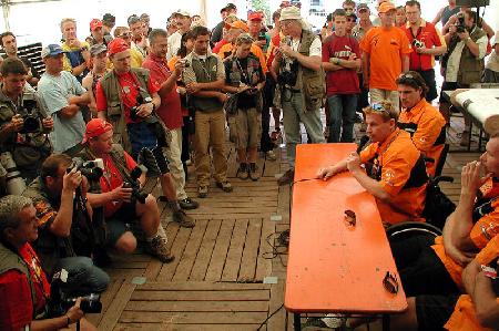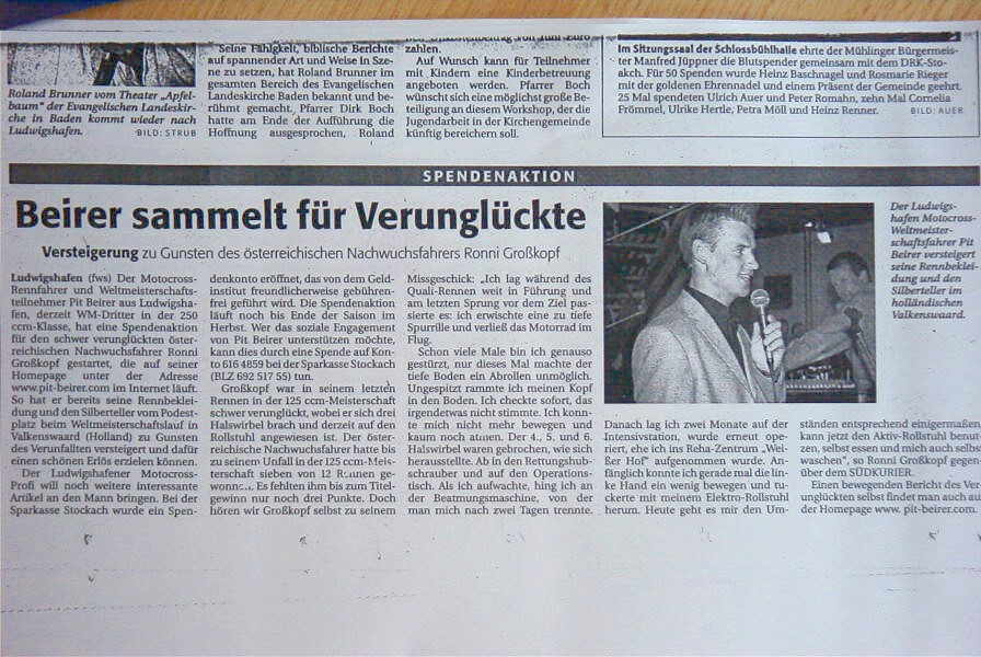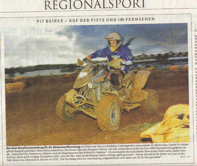 In Gaildorf hatte Pit ein Interview gegeben, das man bis vor kurzem bei www.realmx.com anhören konnte. Dies sind die Bilder von dort von diesem Interview und der Showrunde mit seinem Mech Claudio auf dem Quad im Gespräch mit Stefun Everts.