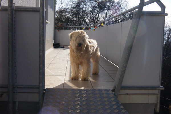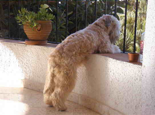 Auf unserem Lieblingsbalkon bei unseren Lieblingsfreunden in Spanien lümmel ich soooo gerne auf der Balustrade. Da kann ich gaaaanz lange in den Garten stieren und alles beobachten.