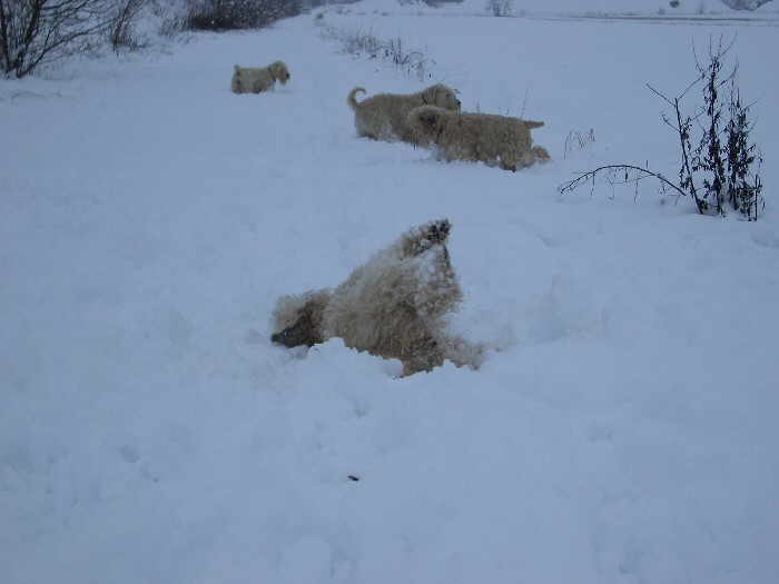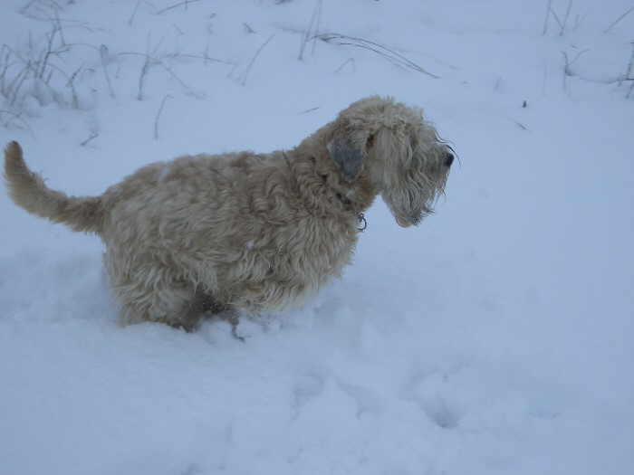 nein, ich bin nicht umgefallen, ich liebe es, mich im Schnee zu wälzen, weil da bekommt man so ein schönes weiches Haar... und das ist so erfrischend kühl auf der Haut.